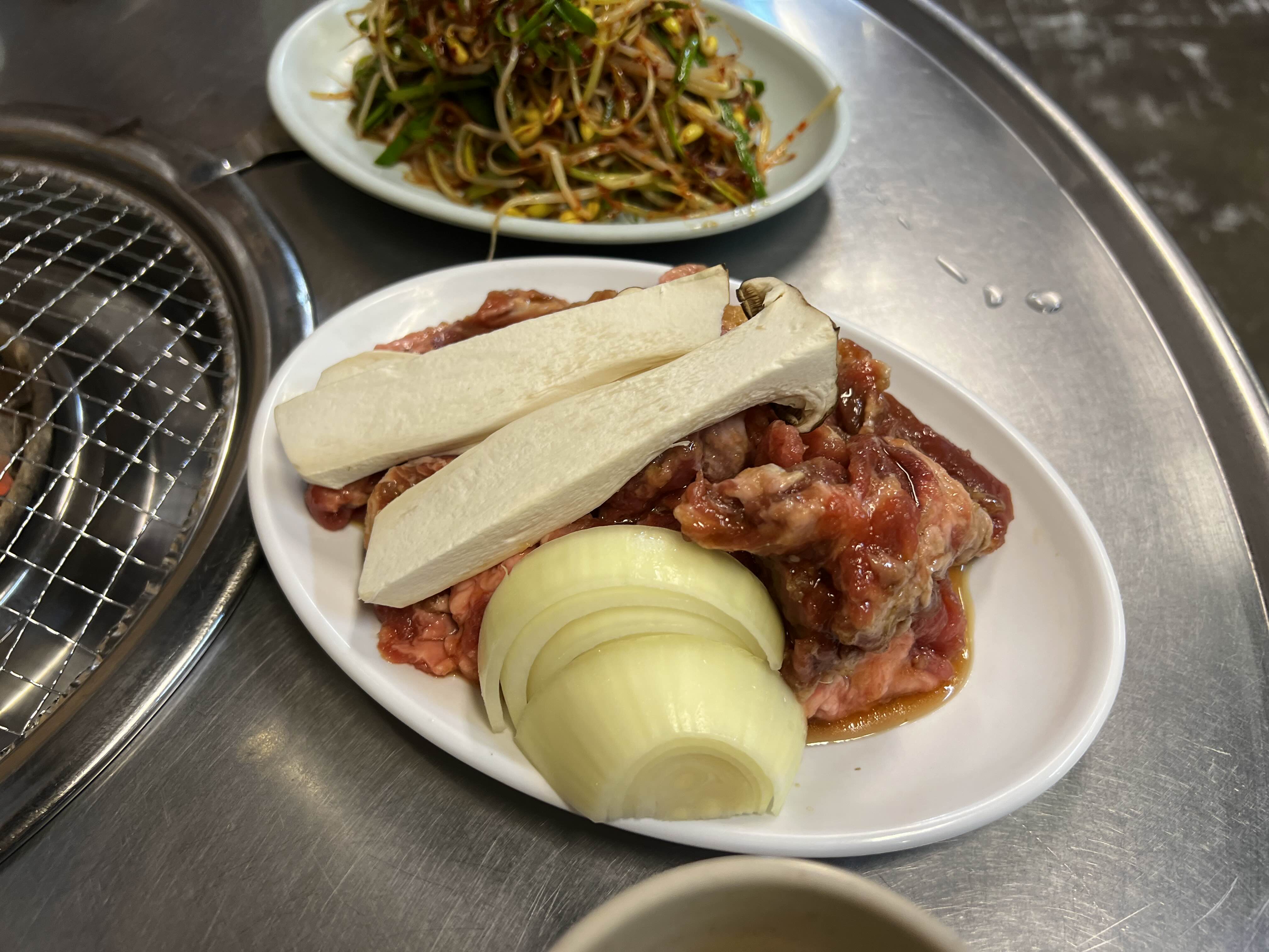 양념이 간간하게 되어있고, 양파와 송이버섯이 나온다.