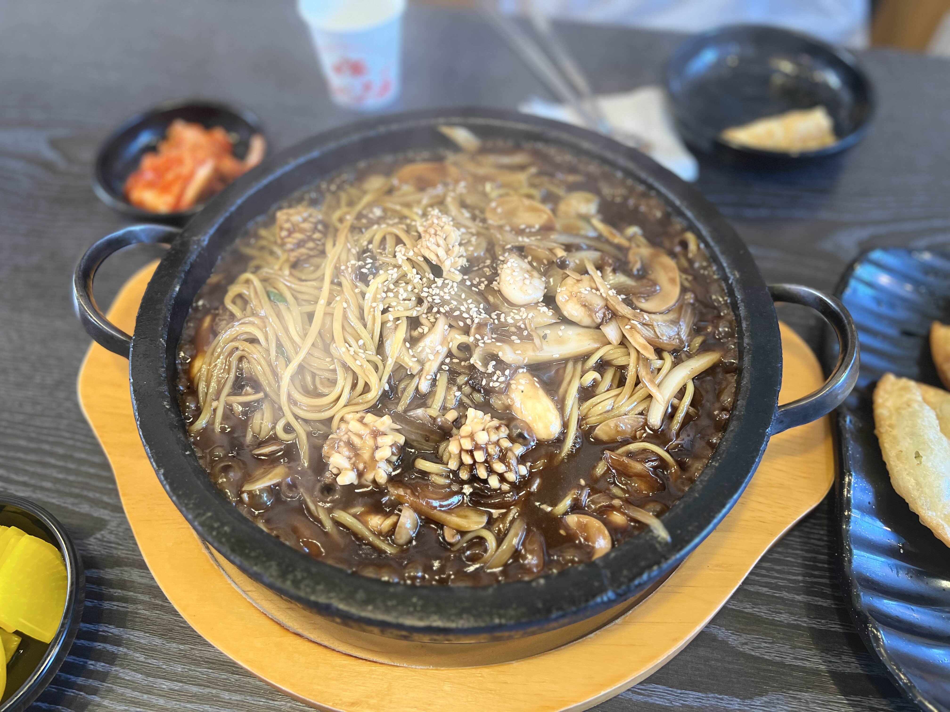 돌짜장의 유래가 어디인지는 모르겠지만, 짜장면의 전분으로 자칫 묽을 수 있는 면과 소스가, 돌판위에서 간짜장처럼 볶아지는 느낌이 매우 인상깊었다.