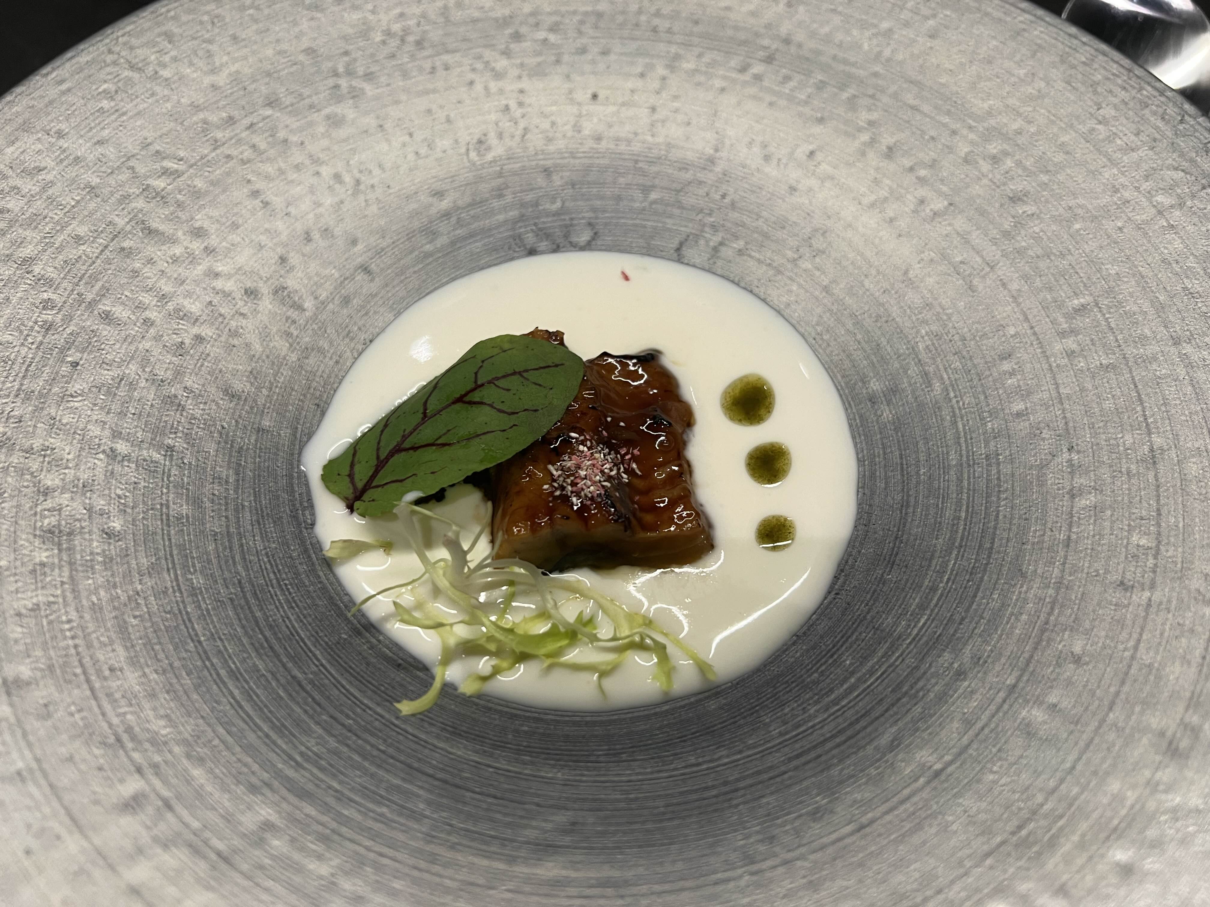 양념되어 있는 장어가 크림소스에 빠져있다.