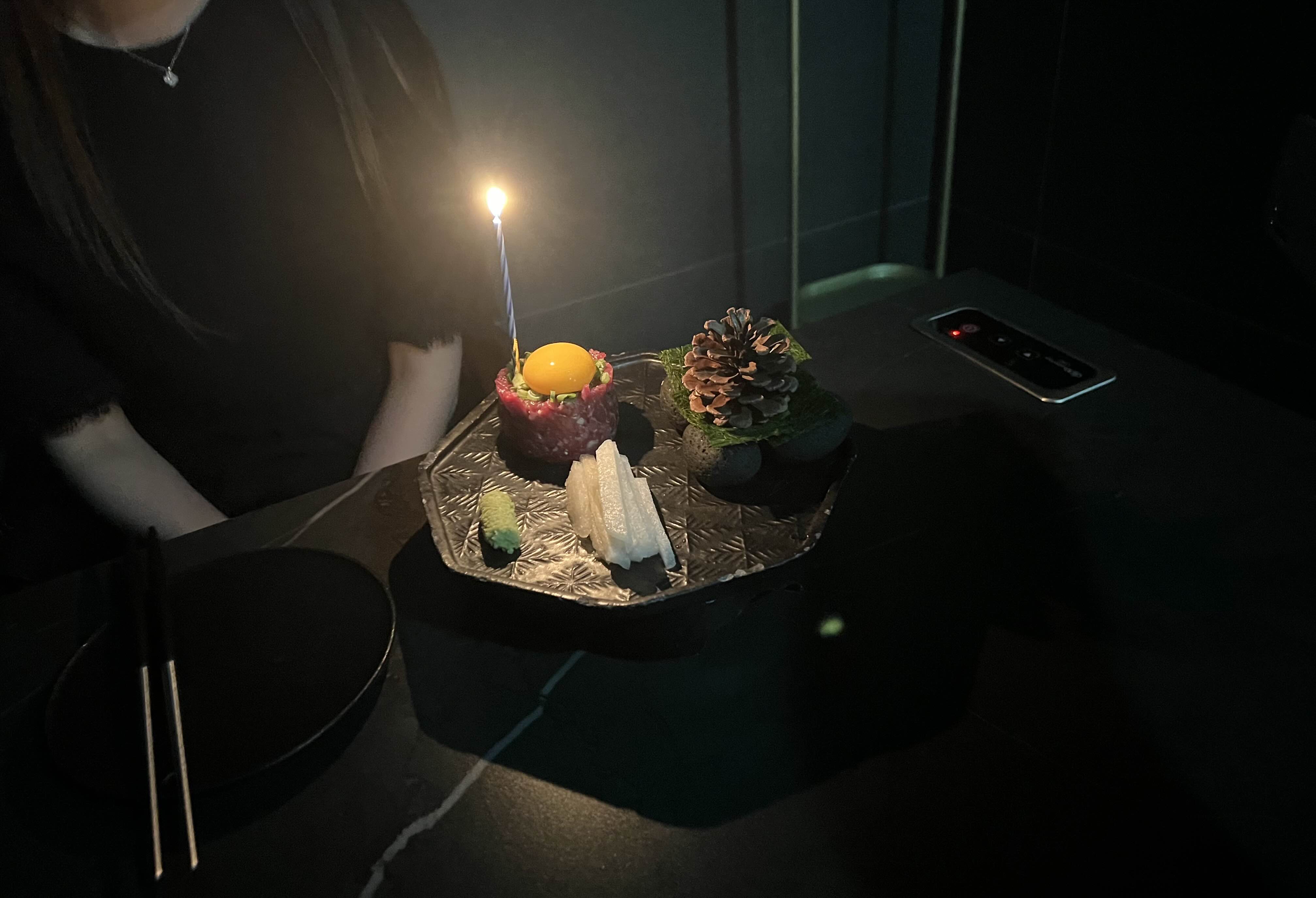 단, 육회 케이크와 촛불 이벤트