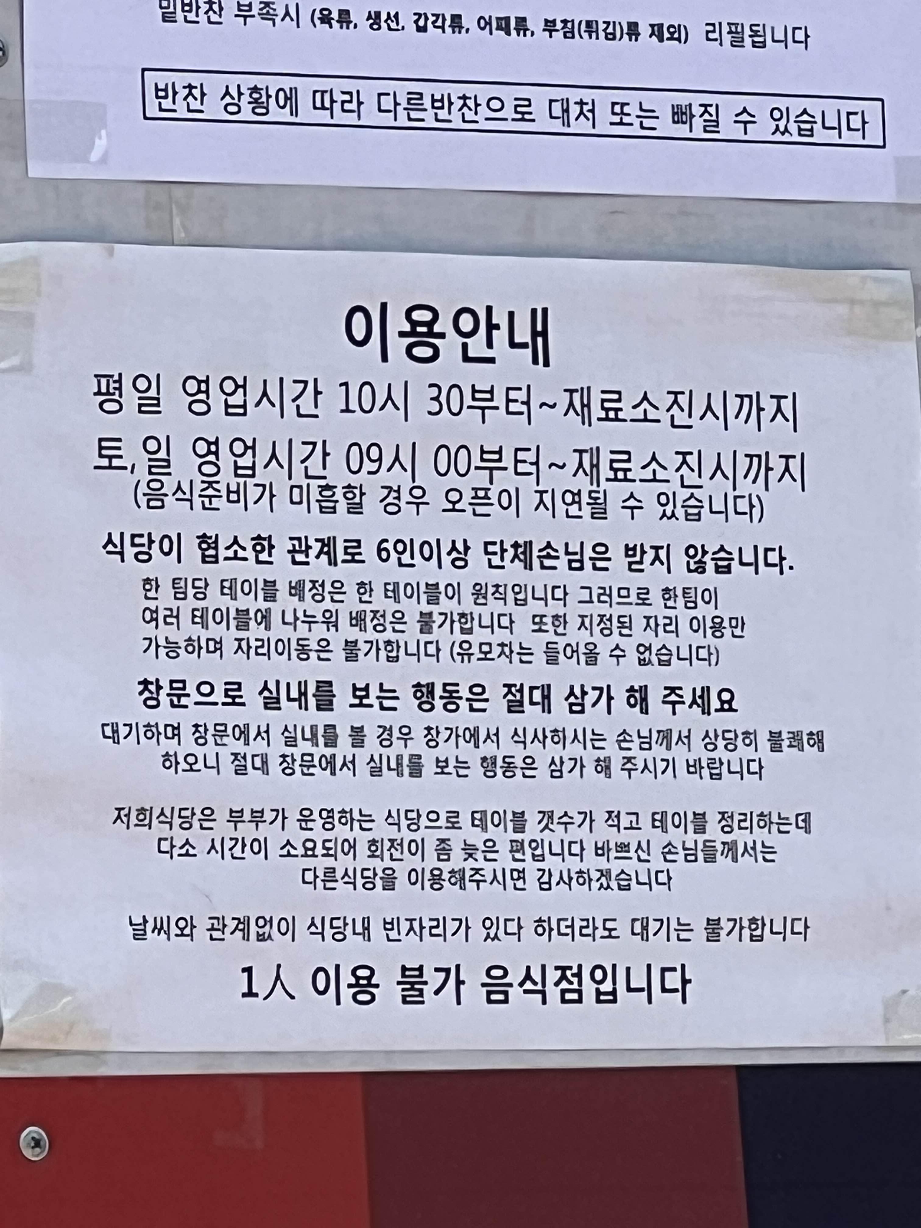 속된말로 진상이 얼마나 많았는지, 웨이팅에 대한 상세한 내용이 매장앞에 붙어있다.