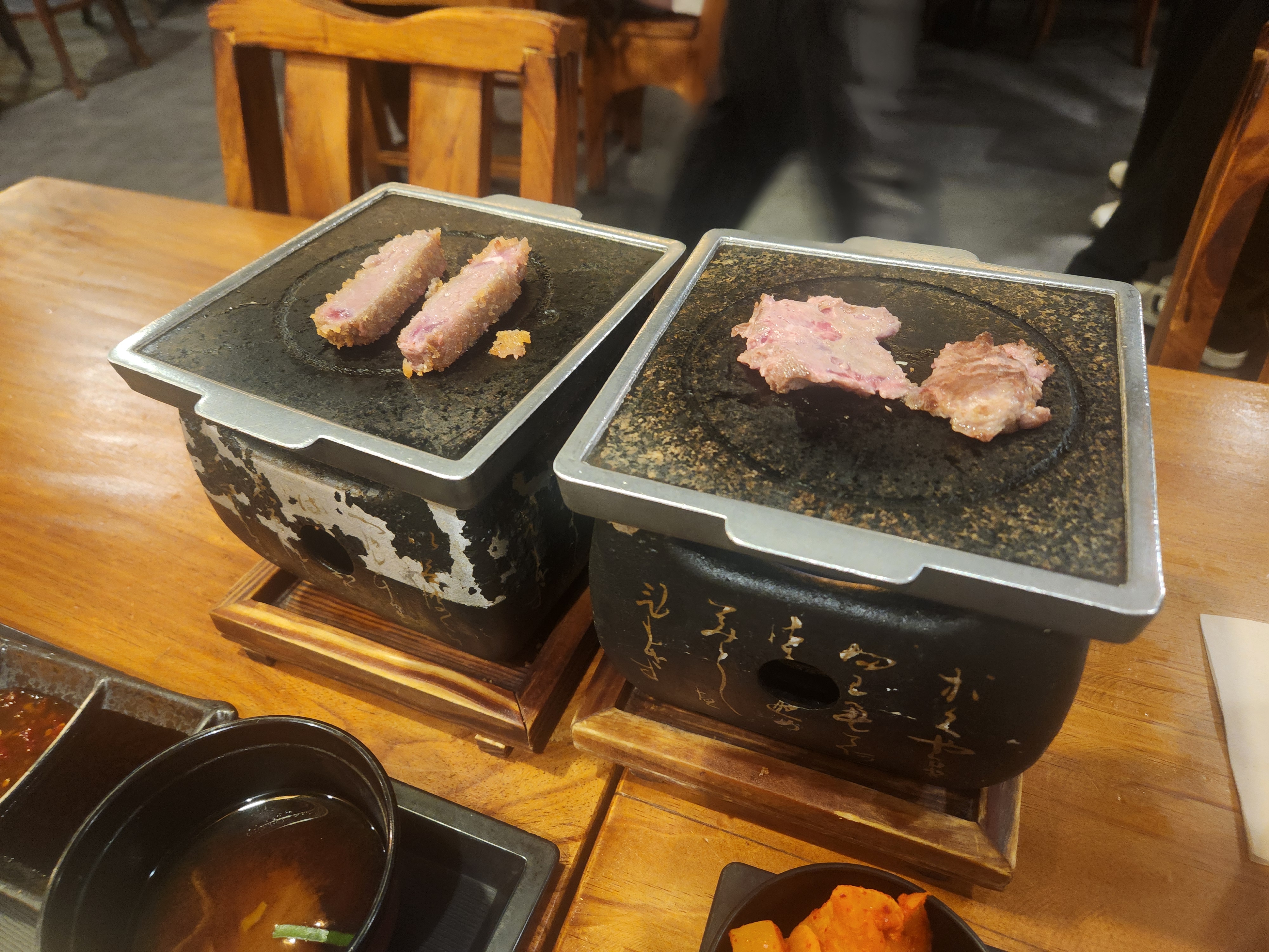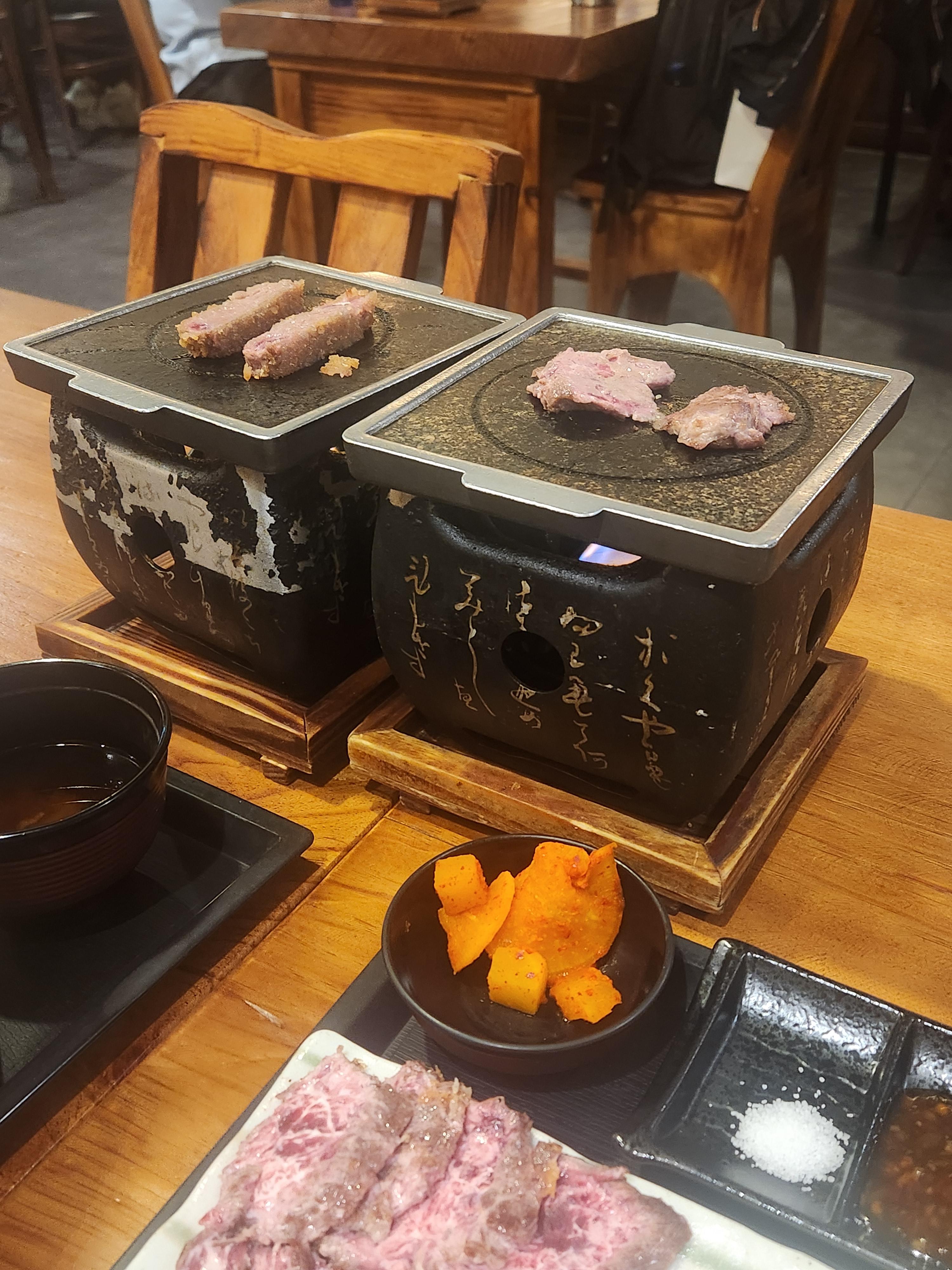 규카츠와 스테키 모두 화로에 굽는데