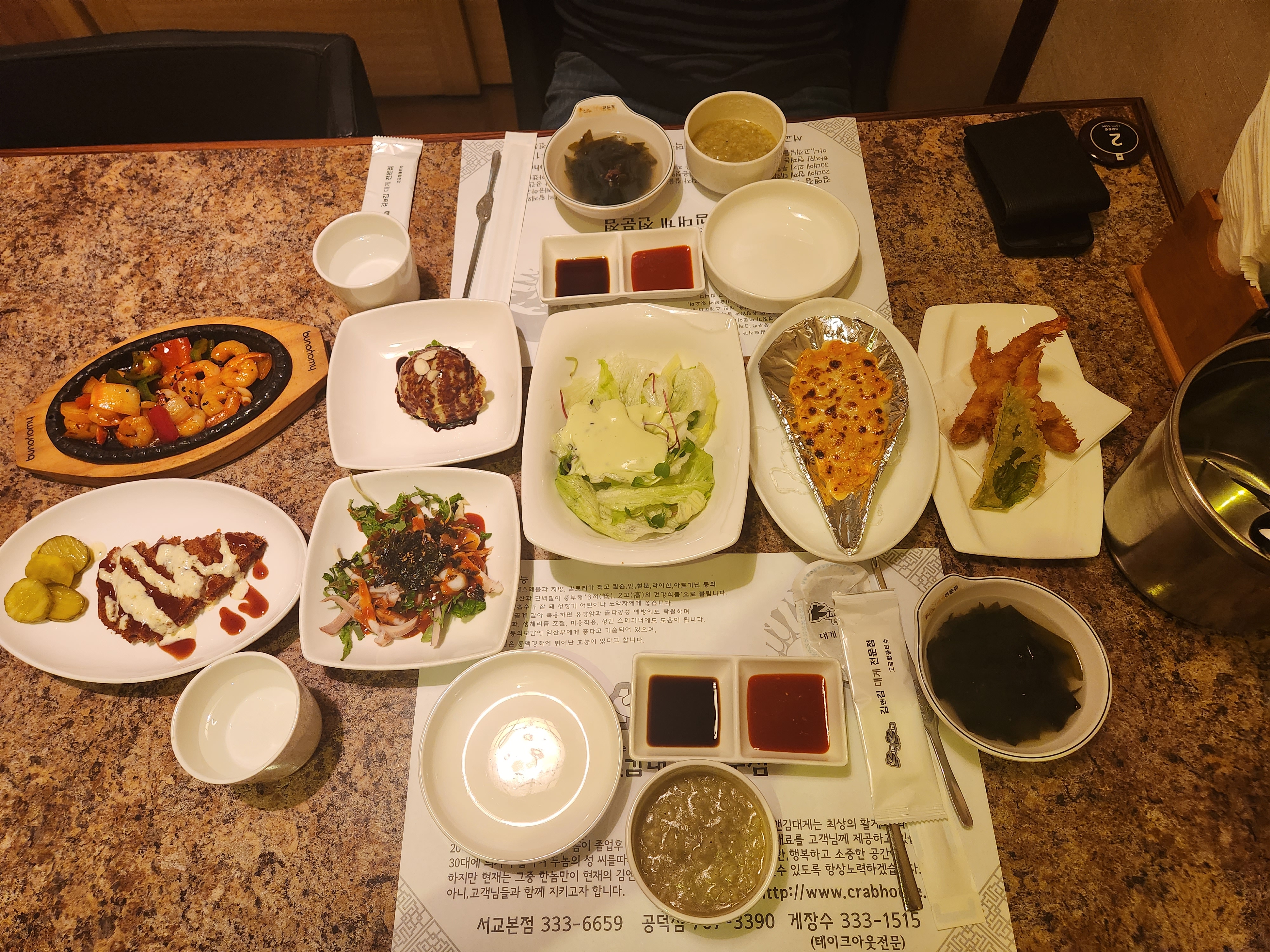 새우튀김과 샐러드, 콘치즈등 입맛을 돋궈주는 애피타이저들이 나온다.