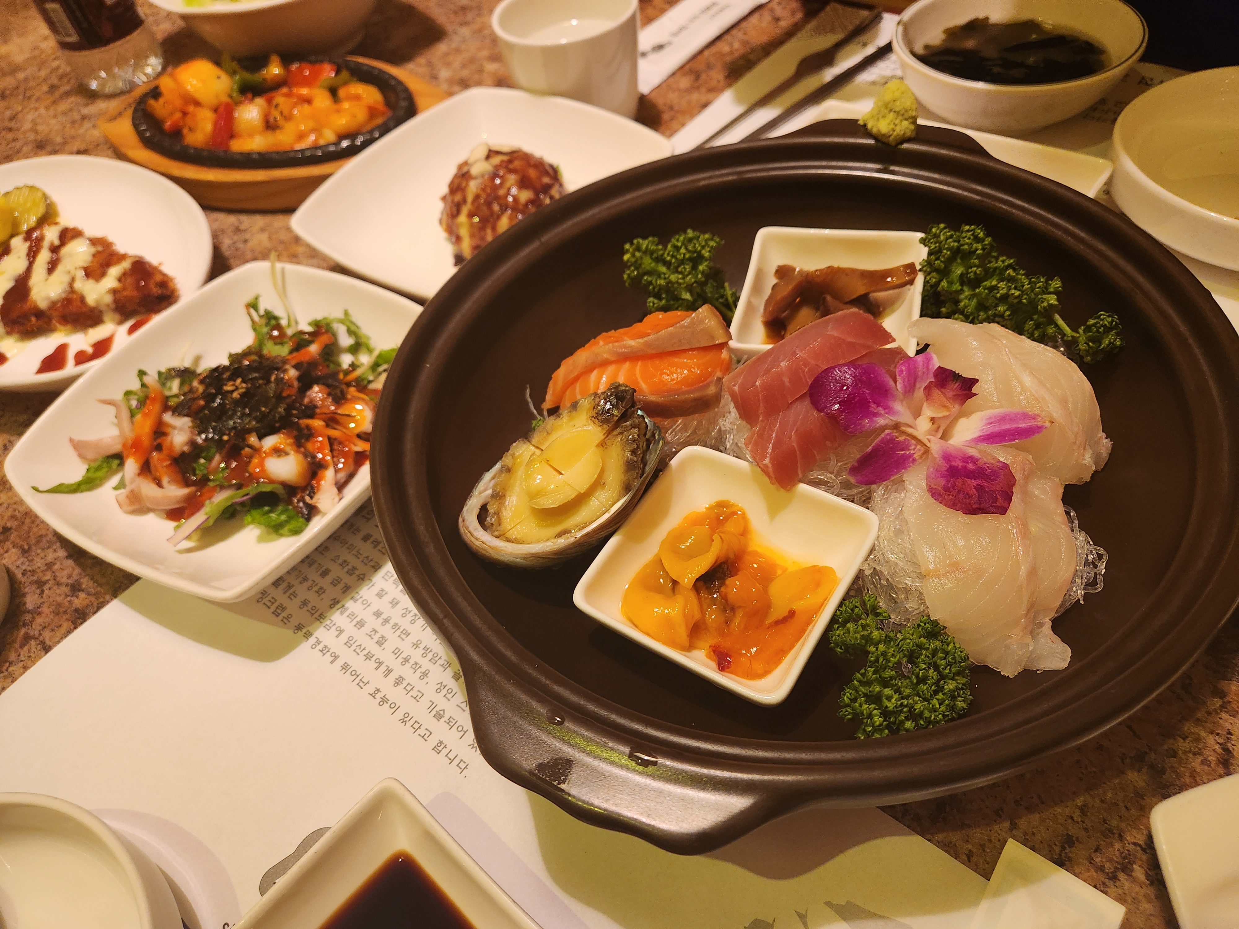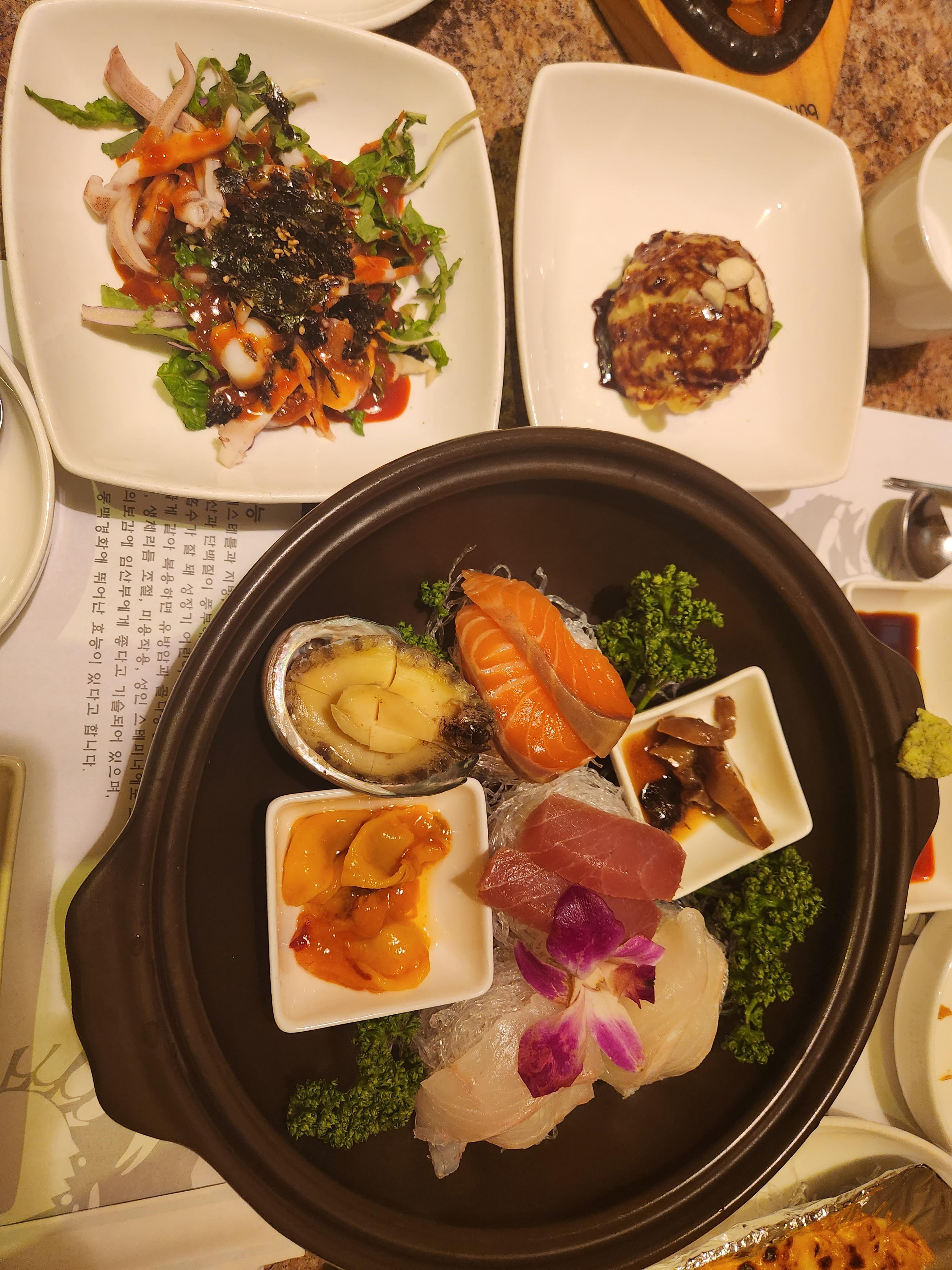 회랑 회무침도 나오고, 멍게 전복이 나오는 점이 인상깊다.