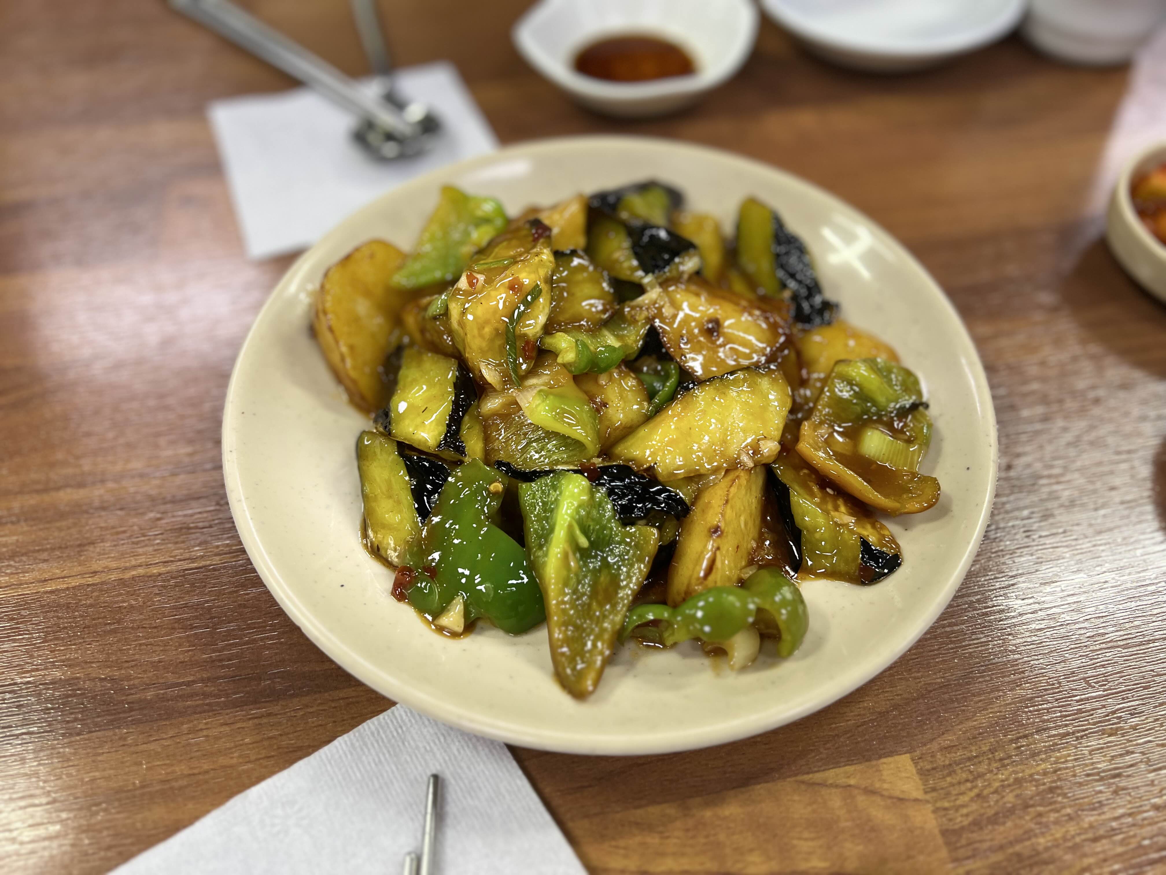 감자, 피망, 가지를 볶아서 주는데, 향이 좋고, 식감도 좋은 밸런스 좋은 음식이라고 생각한다.